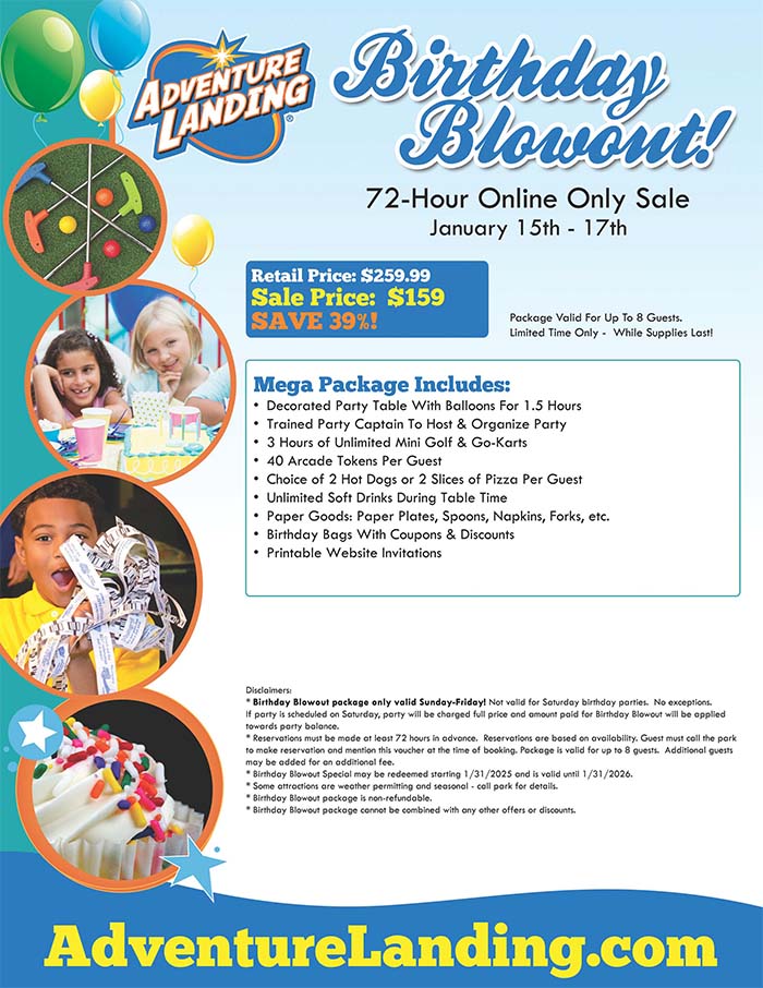 You can choose any combination of 3 of the following attractions: mini golf or go-karts.